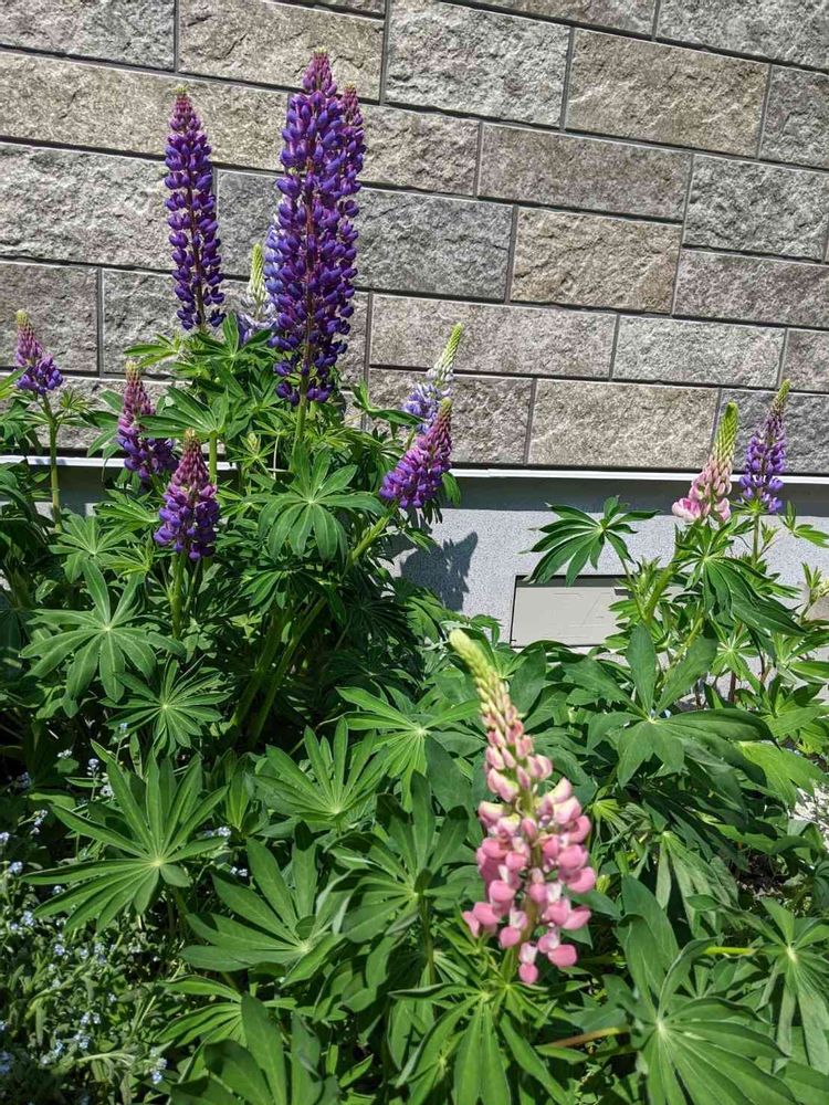 砂利のところからこぼれ種で発芽したルピナスさんがこんなに大きくなって、咲いてきました。ピンクまで咲き始めました。2株以上はあるようです。今うちの庭にはルピナスが大占拠していて、ルピナスだらけです。