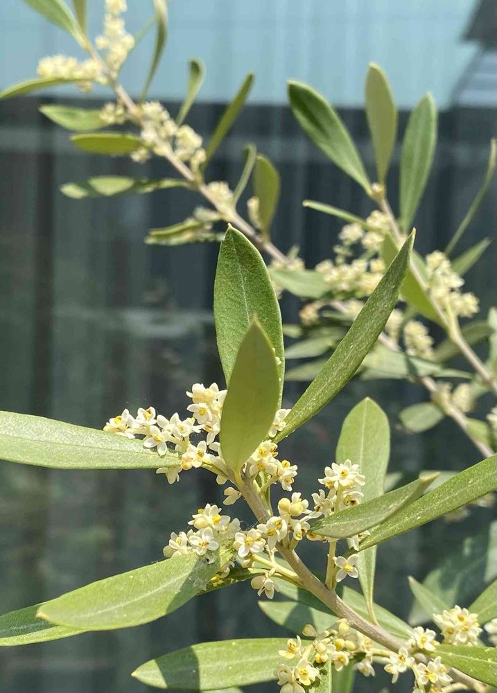ウッドデッキの上のオリーブ(名前知れず)がたくさん花を咲かせました。