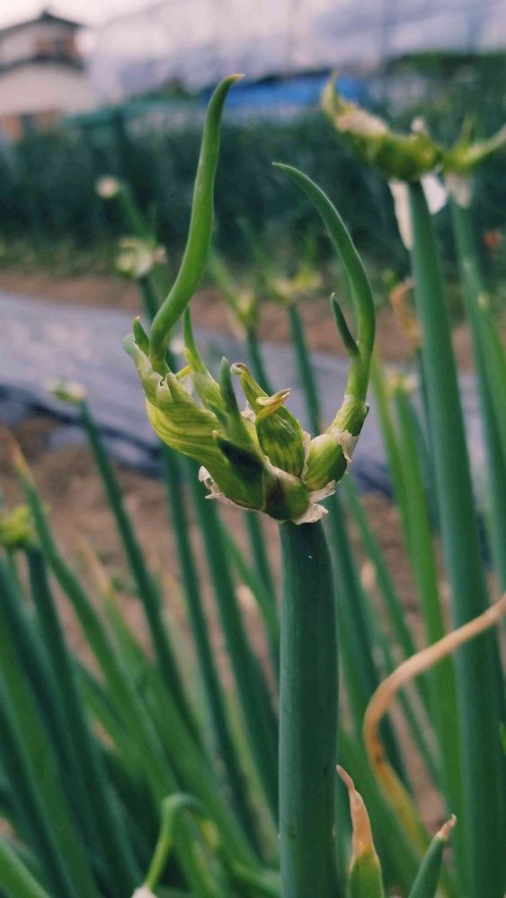 葉っぱの先にちっちゃな苗ができる、おもしろいネギです☺️