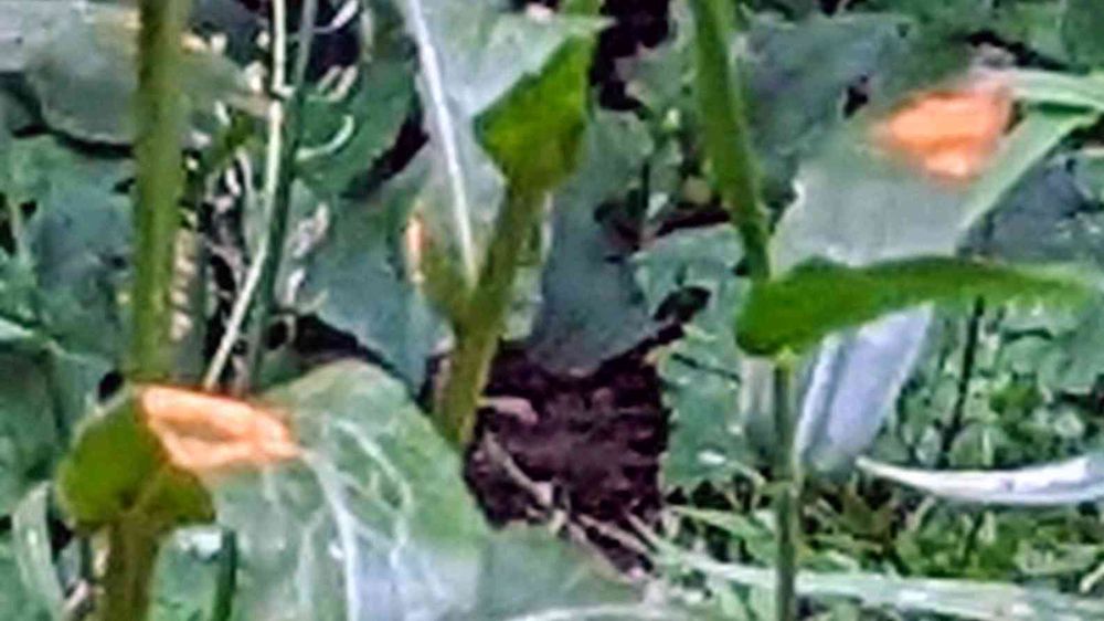 夕陽が差して来て ドッグランのハルジオンの葉の先も夕陽色に…