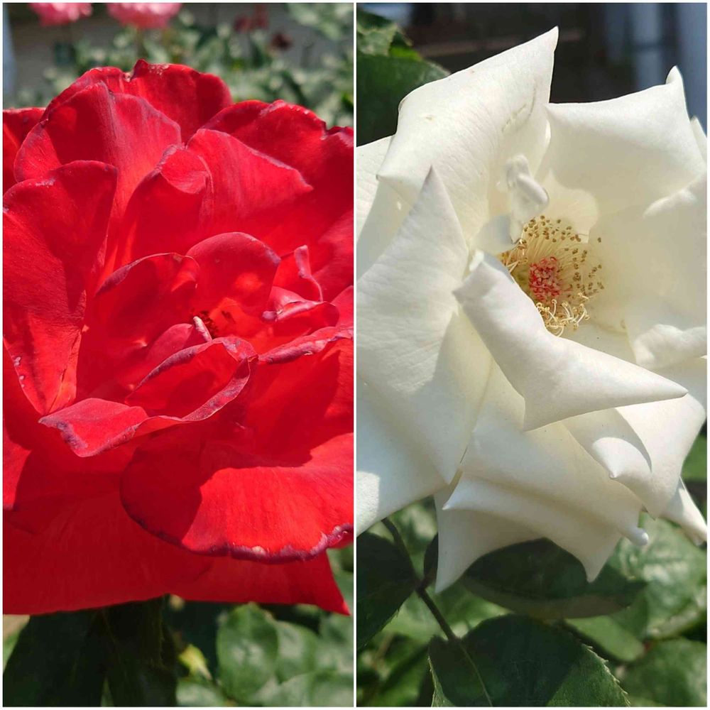 広島県福山市の街路薔薇園に咲く🌹薔薇🌹を並べました。紅白で愛でたいでしょう😁。