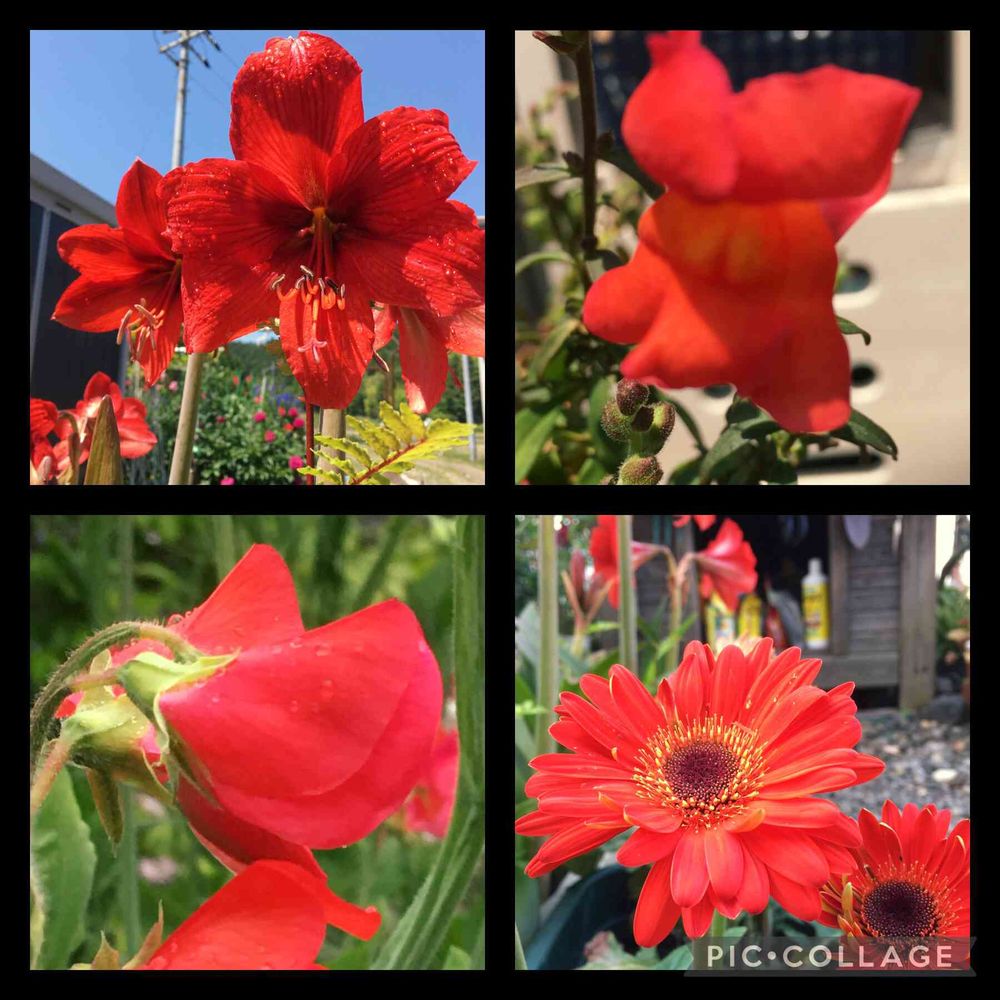 岐阜に住む娘のお産の手伝いから 帰って来たら パッと目をひく赤いお花が それぞれ咲いていて 😮😲びっくり‼️しました
