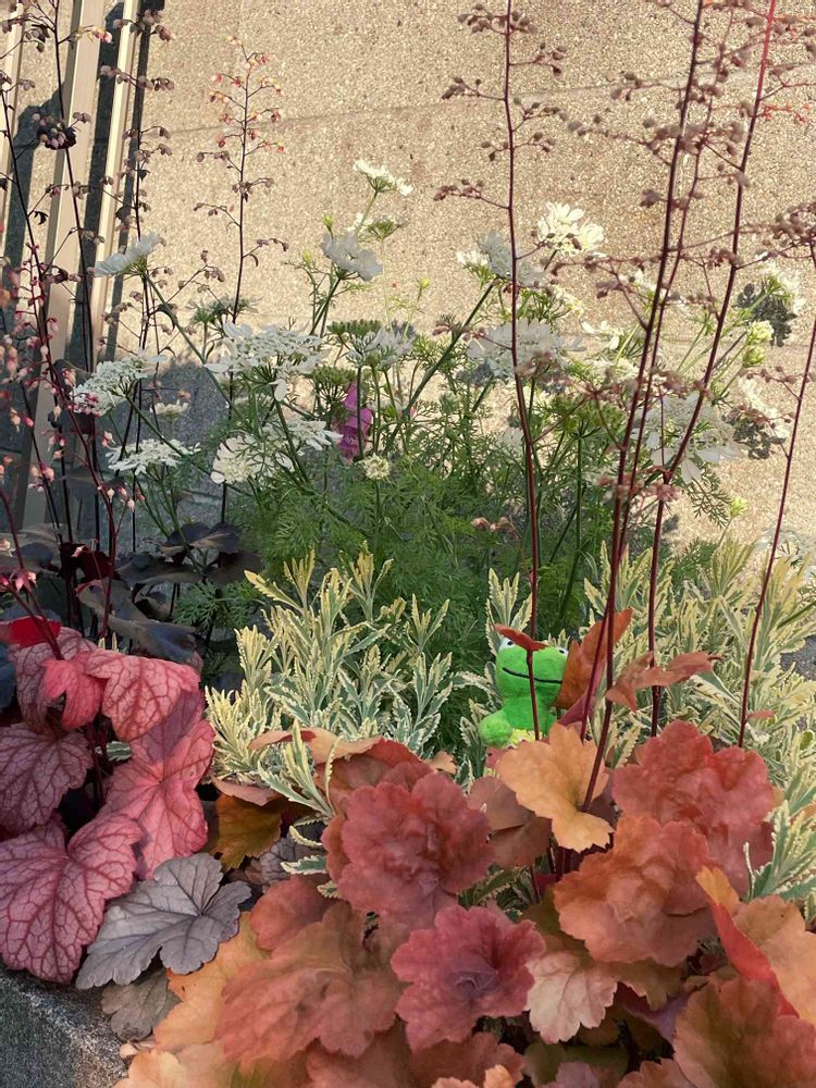 立派なヒューケラ🍀さんとコラボしたオルレアちゃん🌸