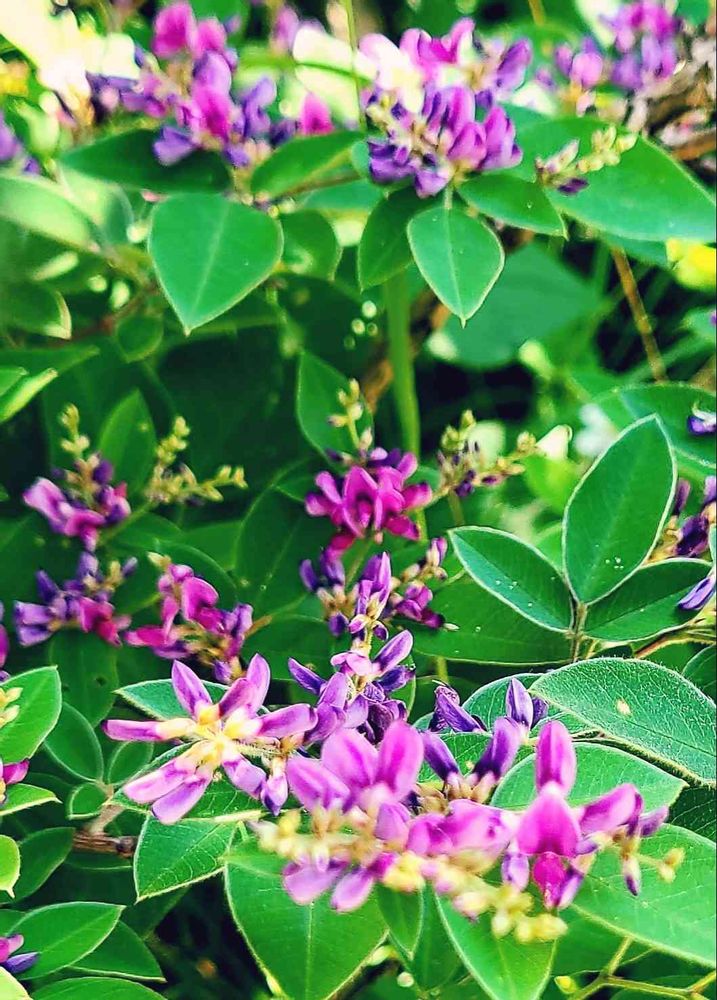 散歩🚶♀️でお寺の境内にもう萩の花が小さな蝶々が踊ってる様に沢山咲いてました。