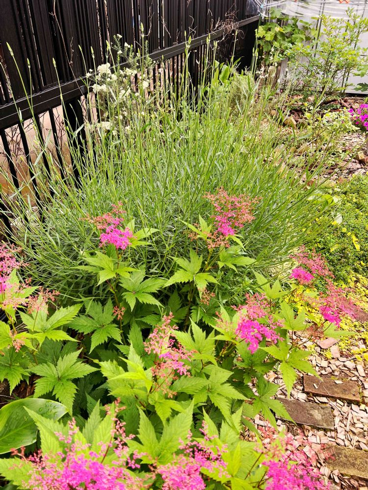 ピンクのシモツケソウは咲いているけど、楽しみなラベンダーの咲き具合もまだあと少し待ちきれないw