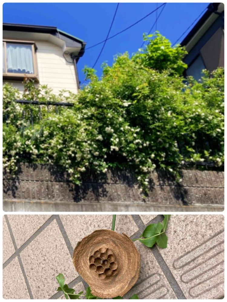 最初、熊蜂が来ていると思って気楽に剪定していたのですが、巣を見たらコガタスズメバチらしく、後からゾッとしました😅