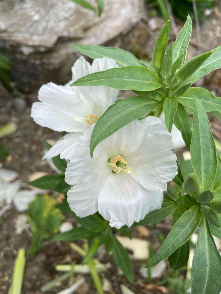 実家に真っ白なゴデチャが咲いていました〜。私があげた苗だと思う。