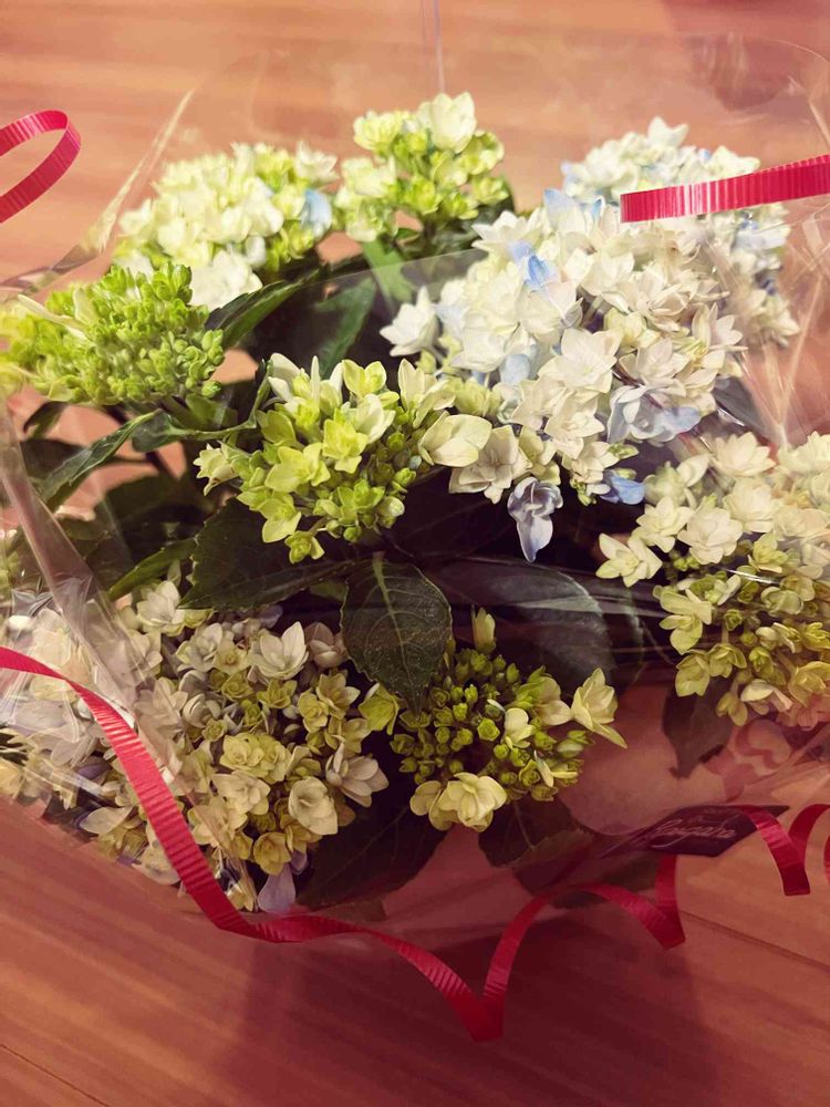うちには先輩アジサイがいるけど、色味も花の咲き方も違ってなかなか良き✨