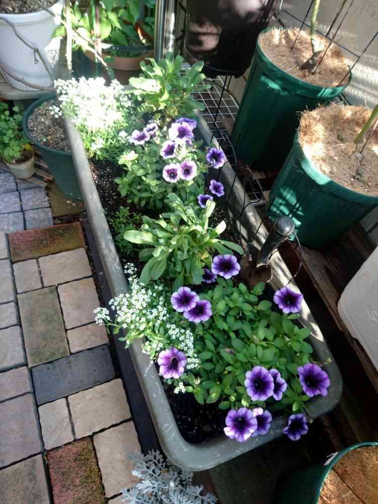 冬越ししたペチュニアを、野菜用の大型プランターへ移動しました🌼*゚゚・*:.。❁