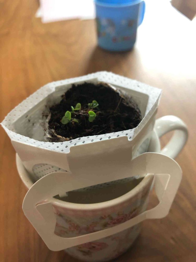 花のあるおうち時間キャンペーンでいただいた中の、コーヒードリッパーの種まきを、先週金曜日に息子とやってみました!