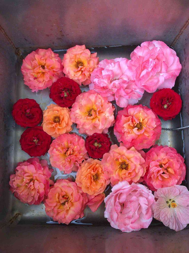 外流しに水を溜めて剪定した薔薇🌹浮かべてみました