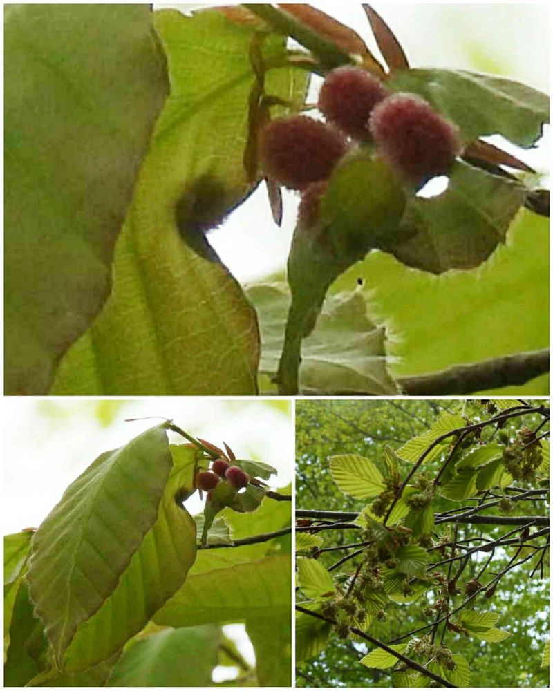 沢山の花を付けたブナにうぶ毛におおわれた丸く赤い実が???