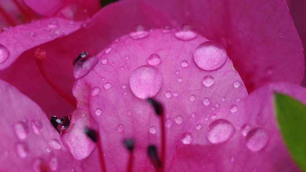 サツキの上に雨上がりで残った雨滴を撮ってみました。