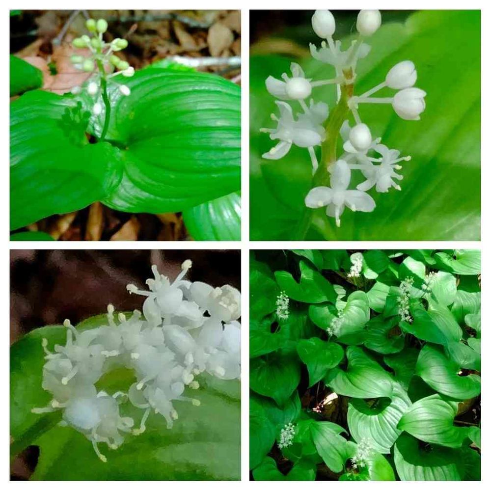 熊にビビり過ぎて行きは気づかなかったけど、足元見たら舞鶴草がいっぱい咲いてた。