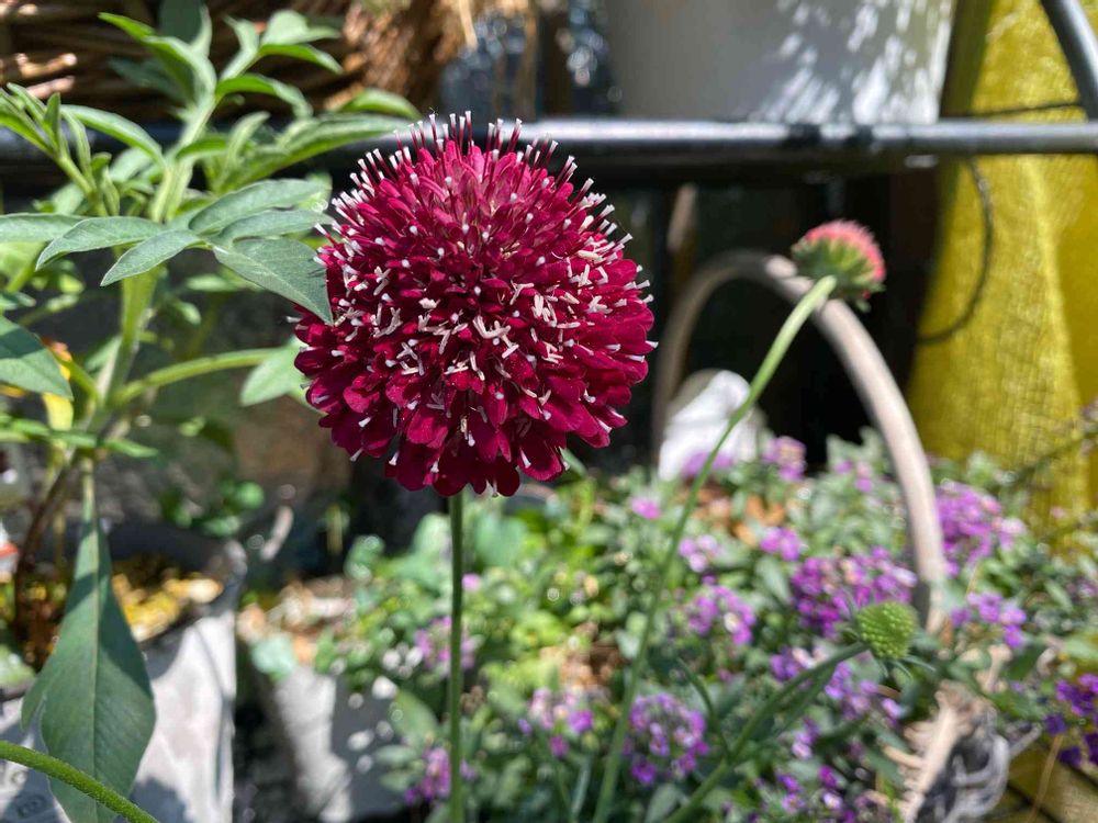 去年の秋に種まきしたスカビオサボジョレーボンネットが咲き始めました。
