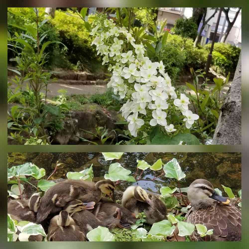 先約がお二人 写真を撮っていらして「柏葉アジサイが咲きましたね~」と話し掛けたら 私達はカルガモ親子よと。