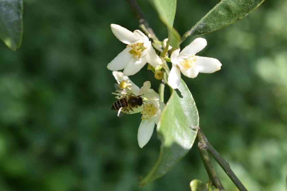 タンカンの花 もう終わってゃったけど タンカンの花にニホンミツバチ