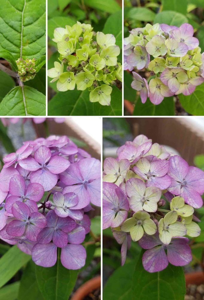 ヤマアジサイ、津江の小でまり。左上の小さなつぼみからここまで成長してくれました!もっと青く咲くと思ってましたが、これはこれで。