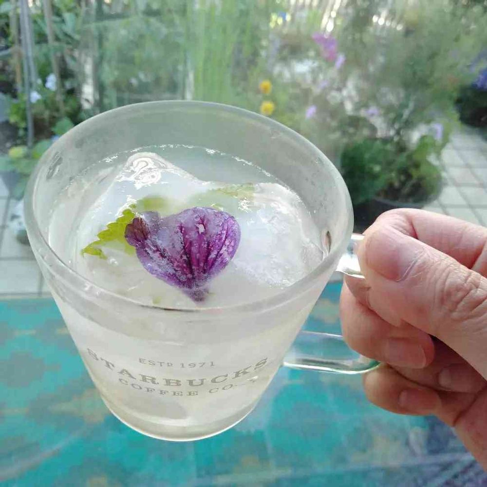 レモングラスとコモンマロウを氷に閉じ込めて。