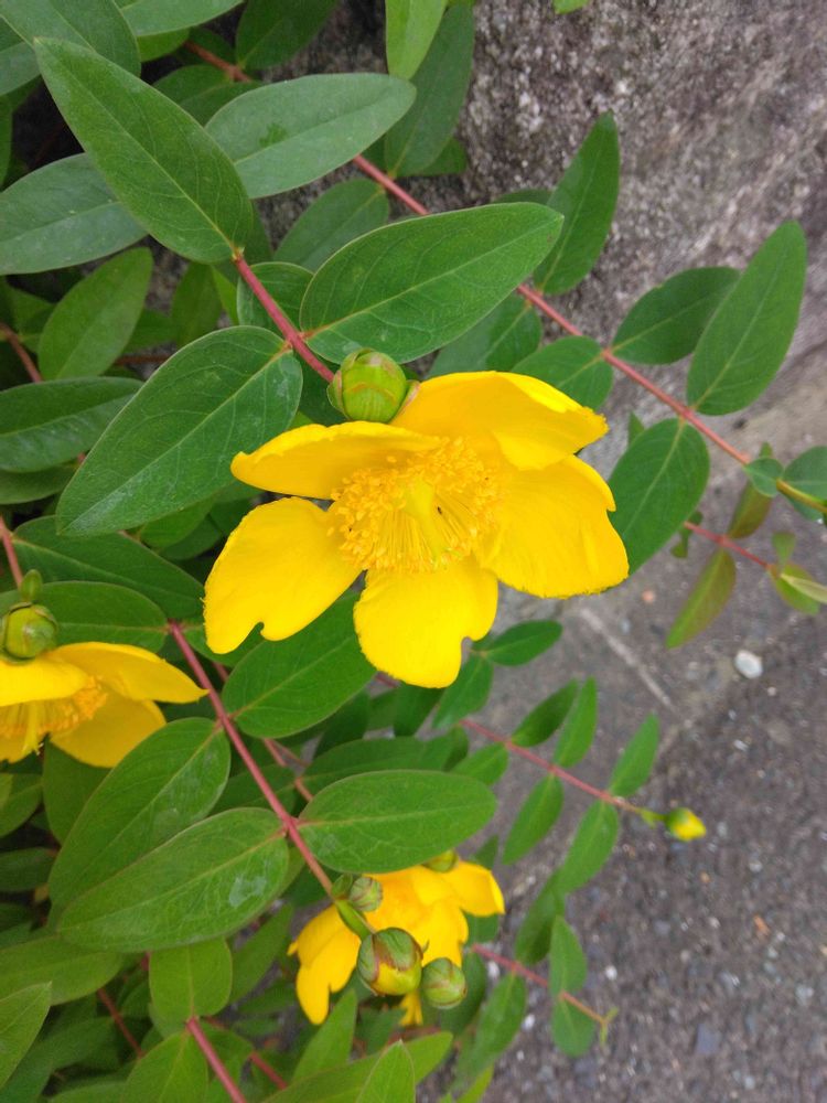 花びらがくっついて雄しべほどほどなので、たぶん錦糸梅(キンシバイ)
