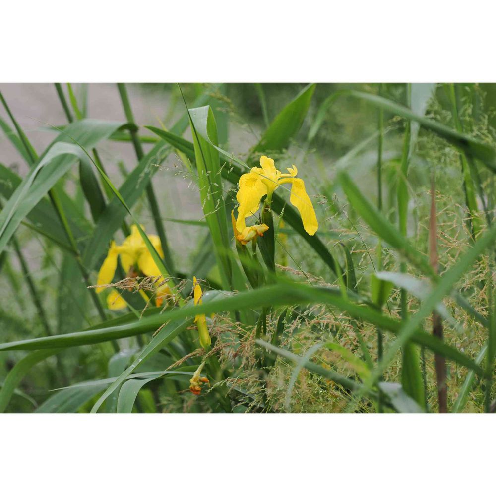 鳥を探していつもの調整池の木道を歩いて行くと、やけに目立つ黄色の花が咲いていました...キショウブかな~?!