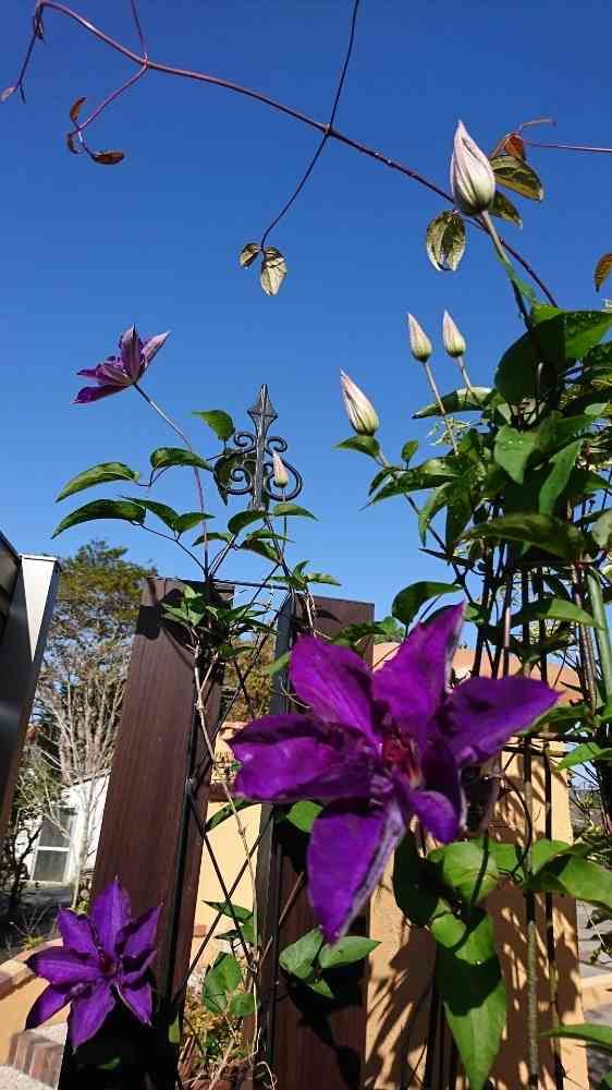とっても綺麗な青空をバックにこれまた濃く蒼いクレマチスさんがとっても綺麗に映えますね(✿︎´ ꒳ ` )♡︎