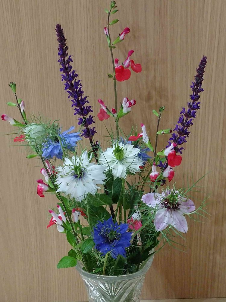 二ゲラが沢山咲いているので切り花にしてサルビアといっしょに飾りました☺️