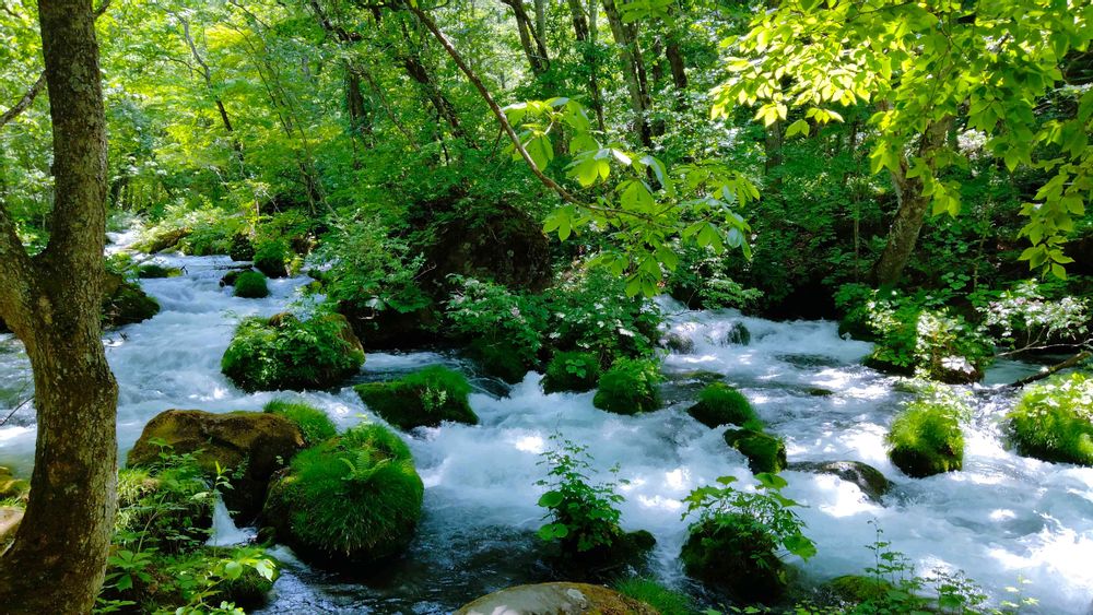 大小様々な岩の上に根付いて生きてく植物、強いですね