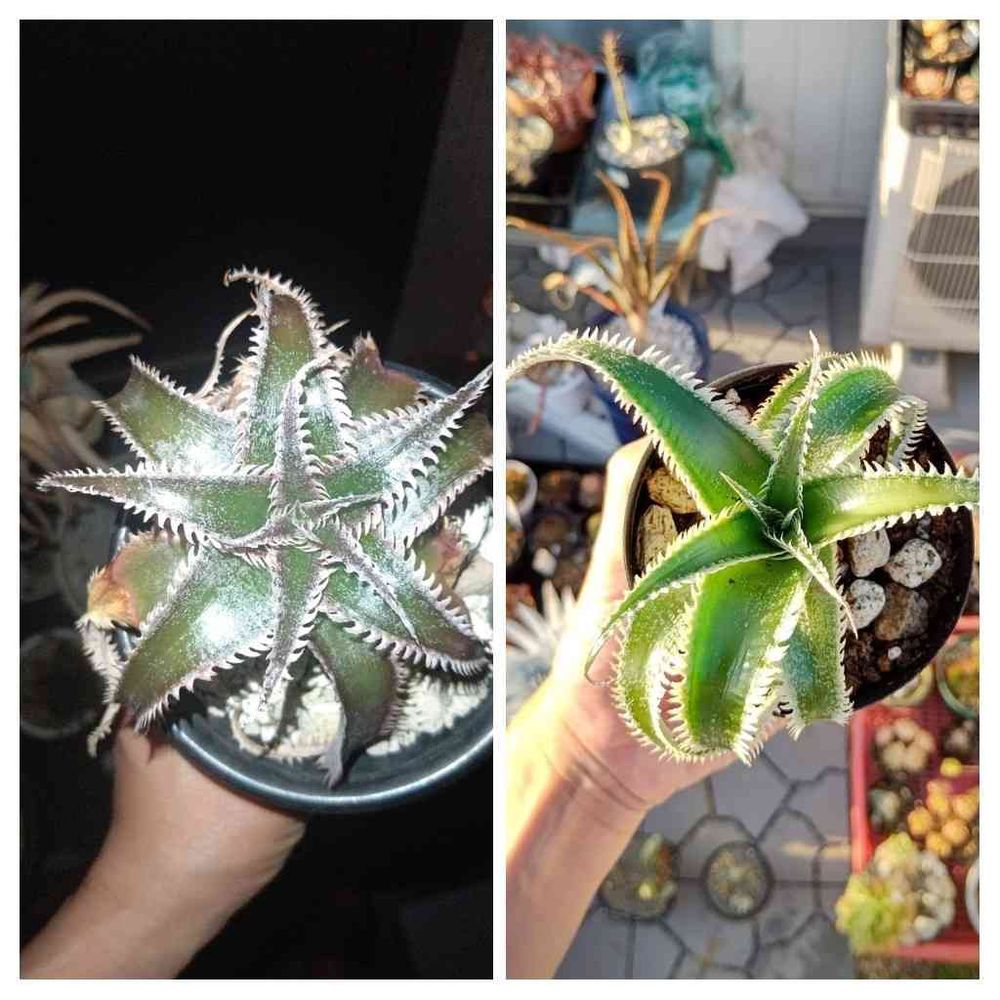 ⚫サボテン、アロエ、塊根など。 ⚫たまに「いいね」押してます。 --------------------------------------------------------- 【19.08】19年8月頃から徐々に多肉植物・サボテンの魅力に取り憑かれてしまいました。 【19.10.22】グリーンスナップを始めました。 【21年~22年】冬越しをほぼ室内避難しないチャレンジ。 【我が家の多肉植物・サボテン・観葉植物】220506時点 662/878 【セダム】3/6 ×春萌(19/11/3) ×プロリフェラ(20/2/1) ×薄化粧(20/2/5) ・※虹の玉(20/2/6) ・※虹の玉?乙女心?(20/2/6) 6・※黄麗(月の王子)(20/3/5) 【チレコドン】2/5 ×ブッコルジアヌス(19/11/3) ×スカエフェリアヌス 群卵(20/3/4) ×万物想(レティキュラーツス)(20/9/4) ・万物想(レティキュラーツス)②(20/10/2) 5・ワリチー(20/10/8) 【クラッスラ】10/17 ・天狗の舞(19/11/3) ・紅稚児(19/11/3) ×姫花月(19/11/3) ・テトラゴナ(19/11/12) ・火祭り光(19/12/4) ×花月錦白斑(19/12/4) ×※花月(金のなる木)(19/12/12) ・神刀錦(20/1/8) ×キムナッキー(20/1/10) ×10・※メセンブリアンセモイデス(ラージフォーム)(20/1/23) ×※花月?黄金花月?⇒火祭り錦?(20/1/23) ・巴(20/2/27) ・※火祭り(20/3/5) ・ゴーラム(20/12/16) ・神刀(20/12/24) ×アイボリーパゴタ(20/12/24) 17・spトランスバール ドラケンスバーグ(20/12/24) 【カランコエ】1/19 ・錦蝶(19/10/19) ×不死鳥錦(19/10/24) ×カーニバル(19/12/4) ×※月兎耳?(19/12/26) ×唐印(19/12/28) ×テディベア(20/1/10) ×ファング(20/1/11) ×ミロッティー(20/1/23) ×※黒兎耳?月兎耳?(20/2/6) ×10・※胡蝶の舞(20/2/6) ×星兎耳(20/2/12) ×ゴールデンバニー(20/2/12) ×福兎耳(20/2/12) ×姫黒兎耳(20/2/19) ×※シナモン?孫悟空?(20/2/19) ×キューエンス(20/2/19) ×※月兎耳(20/2/20) ×黒兎(20/2/20) 19×シナモン(20/2/21) 【センペルビウム】13/17 ×巻絹(19/9/6) ・パシフィックナイト(19/9/14) ・※百恵(19/12/12) ×※高嶺の華(19/12/12) ・※綾桜(19/12/12) ・※ファイヤーバード?パルグラム?(19/12/12) ・※レッドチーフ?ウラヌス?(19/12/12) ・※シャンハイローズ?(20/2/4) ・※神風?(20/2/4) ×10・※綾桜?(20/2/4) ・※麗人盃?(20/2/4) ・※雪牡丹?(20/2/4) ×※紅牡丹?(20/2/4) ・※ラウンドシーン?(20/2/4) ・※巻絹?(20/2/6) ・レッドベル(20/2/19) 17・※ご近所さん(20/5/17) 【ガステリア】39/43 ・春鶯囀バテシアーナ(19/11/20) ・グロメラータ(19/11/20) ・臥牛(19/11/20) ・リリプターナ(子亀姫)(19/11/20) ・白星竜(ベルコサ)(19/11/20) ・錦沙戸宝(19/11/20) ・ニティダ(19/11/22) ・フロッキー(19/11/22) ・姫子宝錦(19/11/24) 10・虎鉾(19/11/24) ・富士子宝錦(19/11/26) ・照姫(19/11/27) ・恐竜×大桑臥牛(19/11/29) ・颯々の松(19/11/29) ・ドラゴンスキン(19/12/2) ・名前不明⇒グリーンワイパー(19/12/4) ・黒鶯囀(19/12/4) ×臥牛錦 糊斑(19/12/4) ・白臥峰ダルマタイプ(19/12/4) 20・バイリシアナ×グロメラータ(19/12/10) ・ピランシー錦※斑多め(19/12/24) ・ピランシー錦※斑少なめ(19/12/24) ・臥牛竜(19/12/24) ・グラキリス(虎の巻)(19/12/25) ・ホワイトパール(20/1/7) ・白銀水牛(20/1/7) ・エクセルサ(20/1/8) ・ダルメシアン(20/1/10) ・タワー(20/1/23) 30・クロチェリー(20/1/23) ×ニグリカンス f.dark monstrosa(20/2/27) ・金剛殿(20/2/27) ×ラウリンソニー(20/3/13) ・幅広ピランシー(20/4/7) ・恐竜×白点臥牛(20/4/7) ・恐竜(20/11/9) ・ラウリンソニー②(20/11/19) ・恐竜②(21/1/12) ・恐竜×春鶯轉(21/1/13) 40・ホワイトパール②(21/1/13) ×ラウリンソニー③(21/2/10) ・エレフィアエ(21/4/13) 43・臥牛②(21/6/14) 【ディッキア】49/52 ・ハイブリッド(19/11/6) ・(アリソナ×マルニエルラポストレイ)×ボーン(20/2/21) ・アリゾナ(20/3/13) ・ニッケルシルバー(20/3/13) ・縞剣山錦(20/3/18) ・(ケリー×マセドイ)×ヘブディング ビッグブルーF1(20/3/24) ・ターザン(20/7/15) ・ゴエリンギー(20/7/15) ・エステベシー(20/7/16) ・グランマルニエル スノウ(20/8/21) ・ダウソニー(20/9/9) ・コリスタミネア パープルフォーム(20/9/16) ・マイケルアンドレス(ブリットルスターF3)(20/9/16) ・ゴエリンギー レッドクローン×ターザン(20/9/18) ・ターザナ(20/9/18) ・レッドボーン×スカイウォーカー(20/10/27) ・グランマルニエル(20/11/4) ・トゥーシ―F2(シルバークローン)(20/11/4) ・グレイオプス(20/11/5) 20・タイニーレッド×ヘブンアンドヘル(20/11/5) ・マルニエルラポストレイ エステベシー シーディング ブラジル(20/11/5) ・(レッドシャーク×ディストーション)×ジョーズ(20/11/5) ・ブラックアイス(20/11/6) ×ダウソニー×ガーネットクロウ(20/11/12) ・デリカータ(20/11/18) ・エステベシー×ゴエリンギ―(20/11/30) ・ゴエリンギーOPS セレクト ホワイト(20/11/30) ・(ソウフィッシュ×7a)×ターザン(20/11/30) ・ベアテアエ レッドクローン(20/12/07) 30・アリゾナ×HU-5(20/12/08) ・エステベシー②(20/12/08) ・ダコタ(20/12/09) ・マルニエルラポストレイ(20/12/10) ・エステベシー×ブリットルスターF2(21/1/8) ・マウンテンオブニードルズ(21/1/14) ・エステベシー③(21/1/27) ・パラファット(21/2/10) ・ジョーズ×ドナマリエ(21/3/15) ×フォステリア×エステベシー(21/3/15) ×40・フォステリア×エステベシー②(21/3/15) ・カタナ(21/3/24) ・スノーストーム×ブライヤーパッチ(21/3/24) ・ワサビ(21/4/7) ・ブラックアイス②(21/4/12) ・ブラ