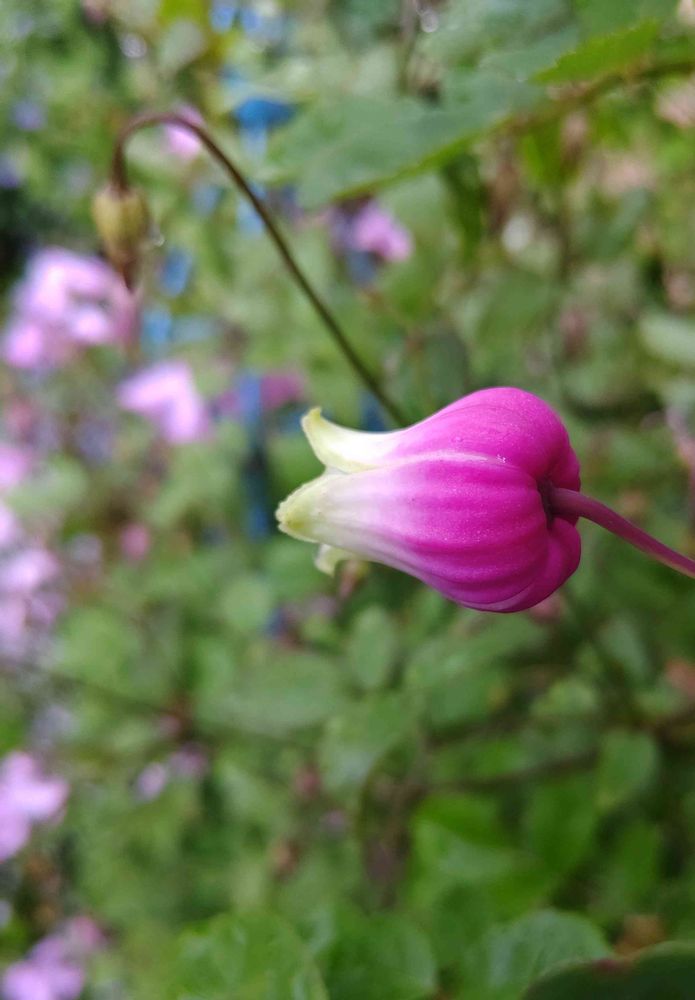 今私のところで咲く唯一の壺型クレマなんです🔔💕