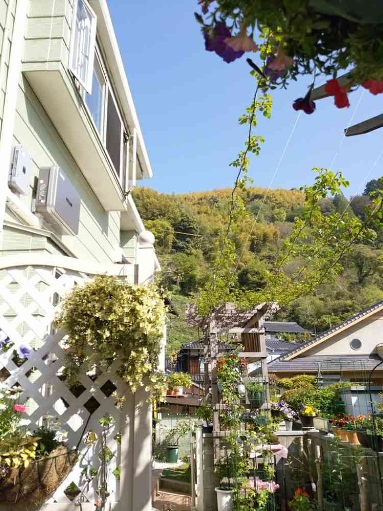「祈りと癒やしの園」から見た北側の風景です。里山からホトトギスの声が盛んに聞こえてきます。岩国米軍基地が近いので、戦闘機の音がこの静寂を台無しにします。