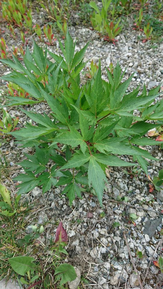 北海道でも漢方薬の原料として栽培されています。写真の場所は畑ではないため、種が運ばれた野良生えです。