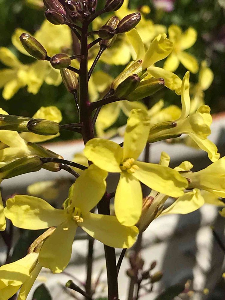 寄せ植えのピカピカした黒い葉牡丹のお花です🌼