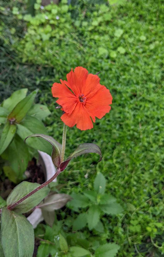 お花が折れてガッカリの後のマツモトセンノウの朱色のお花は私の気持ちを明るくしてくれました🥰