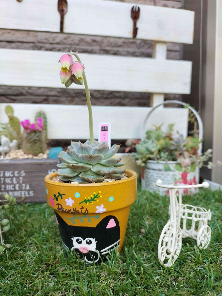 鉢の猫ちゃんも『ん?おはなだ〜』って上を見上げているね〜🐱
