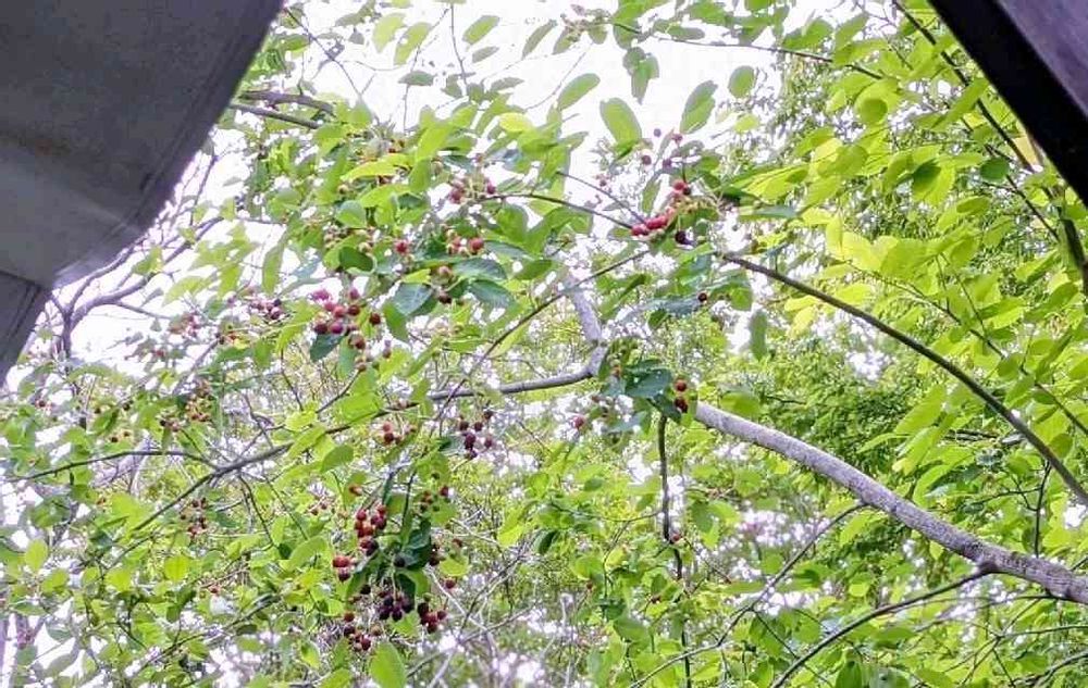 デッキ前のジューンベリーの赤くなって来た実を眺めながら お洗濯物を気持良く干せました