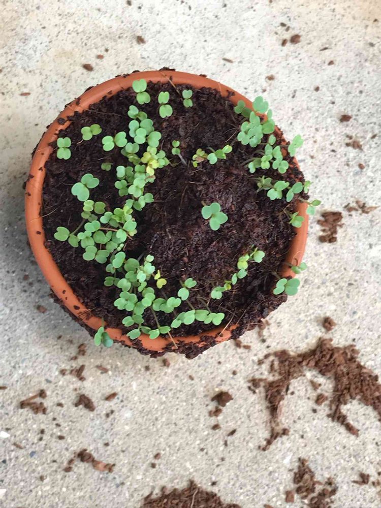 ダイソーのルッコラちゃん芽がいっぱい出た!!すごい!!このまますくすく育ってくれ!