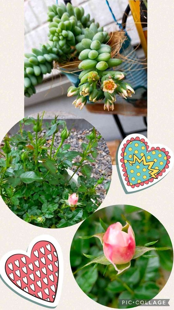(真ん中)ミニバラの蕾がちらほら出てきました😆🌹