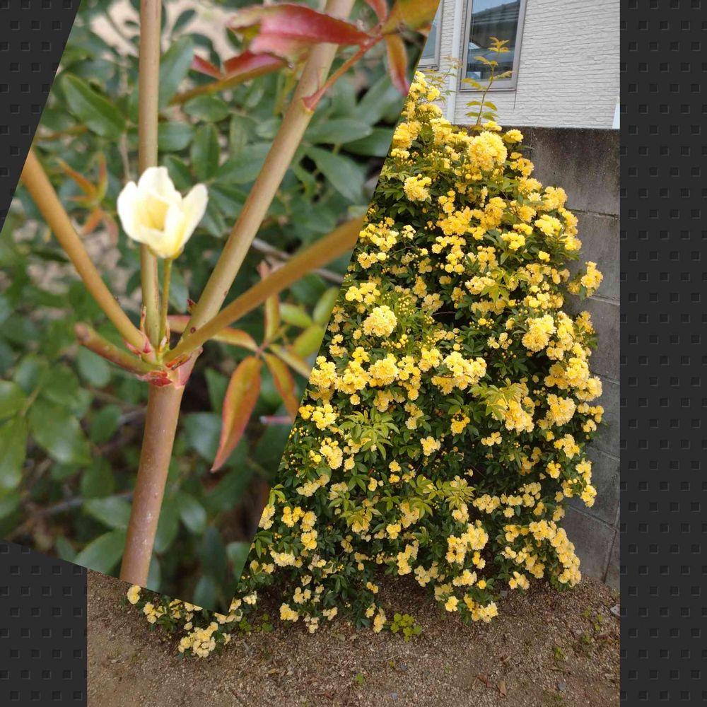 4月末に咲いてすんだモッコウバラに、1ヶ月経ったら今ごろに1輪だけ咲いたんです。