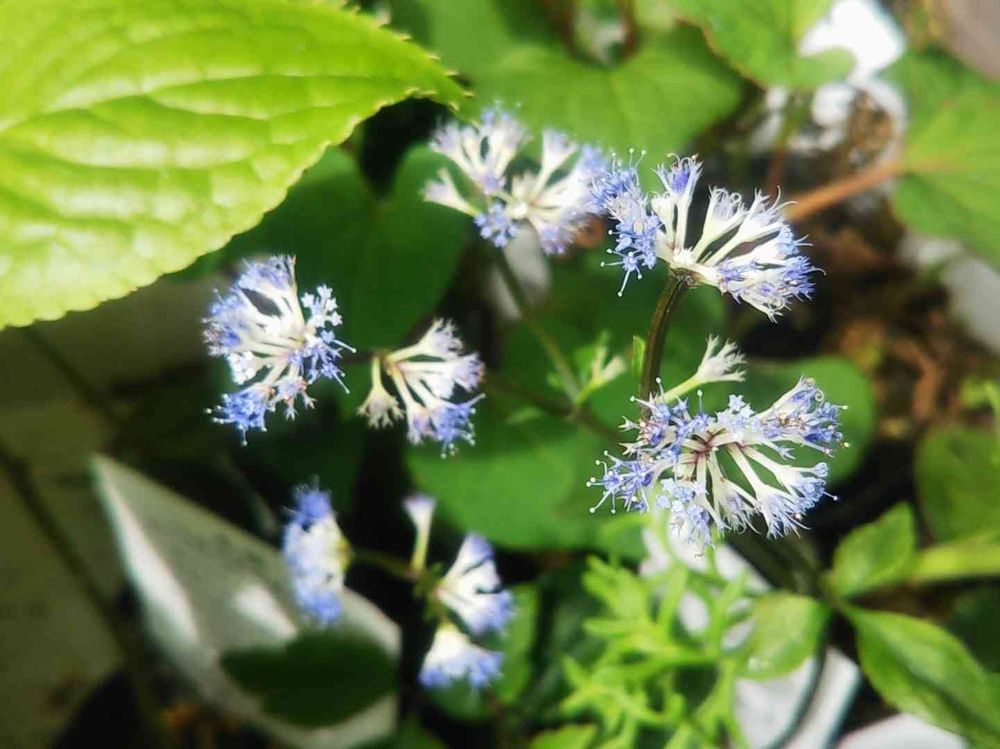 国産の白い花の三つ葉と違って、青くとても繊細な花の、三つ葉です。