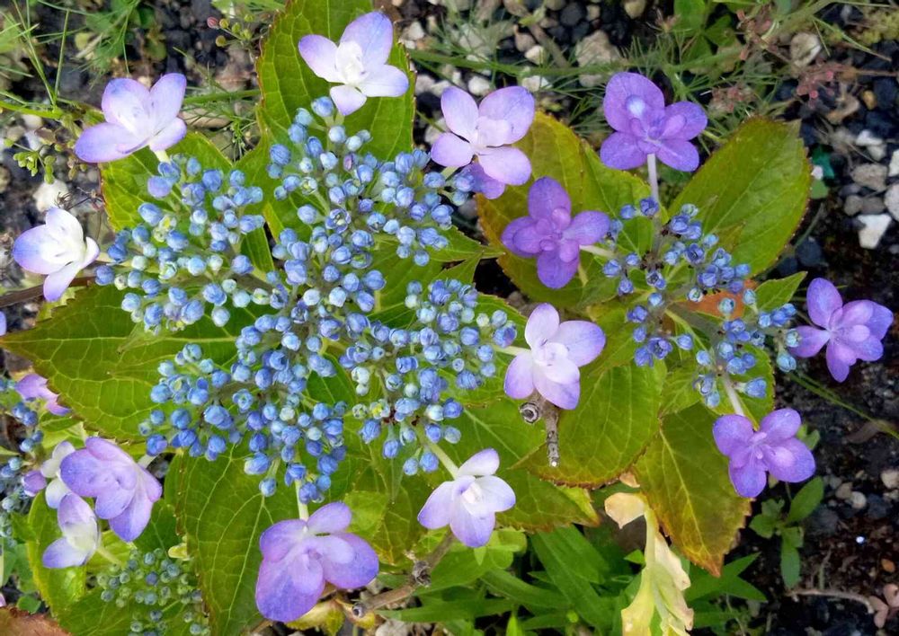 歩道脇の花壇に咲いていました、紫陽花(アジサイ)の花☺️