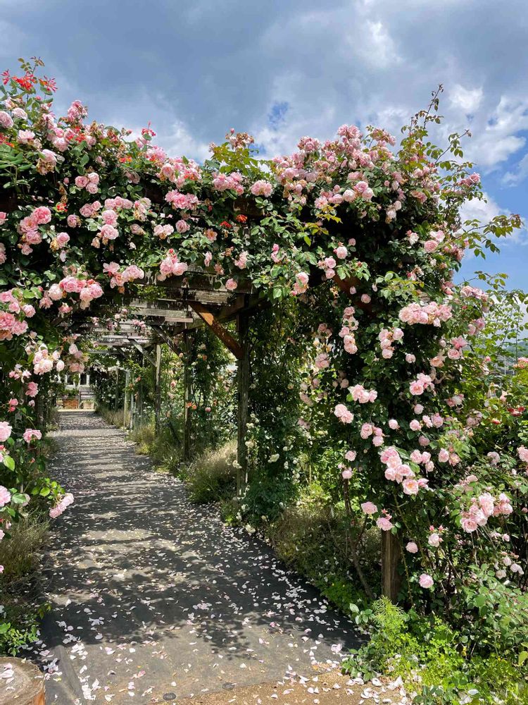 素敵な庭園💕薔薇のアーチも青空に映えてます✨🌹