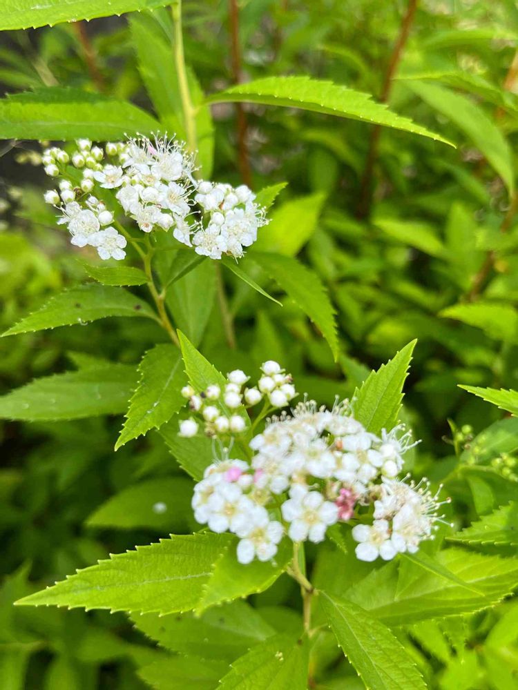 源平シモツケの白、こんなふうに咲きました😍