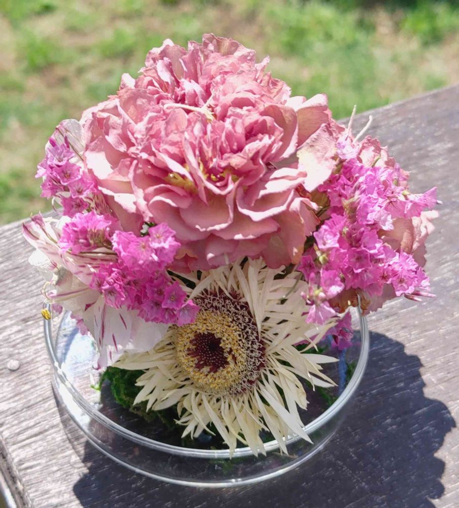 初めてシリカゲルドライフラワーにしてみたけど色も綺麗なままで記念の花が残せるの嬉しい🎶