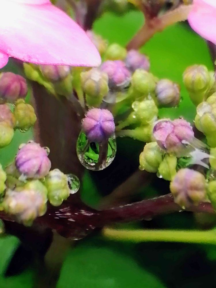 マルマルさんの水滴,がく紫陽花の花,庭 にわの投稿画像