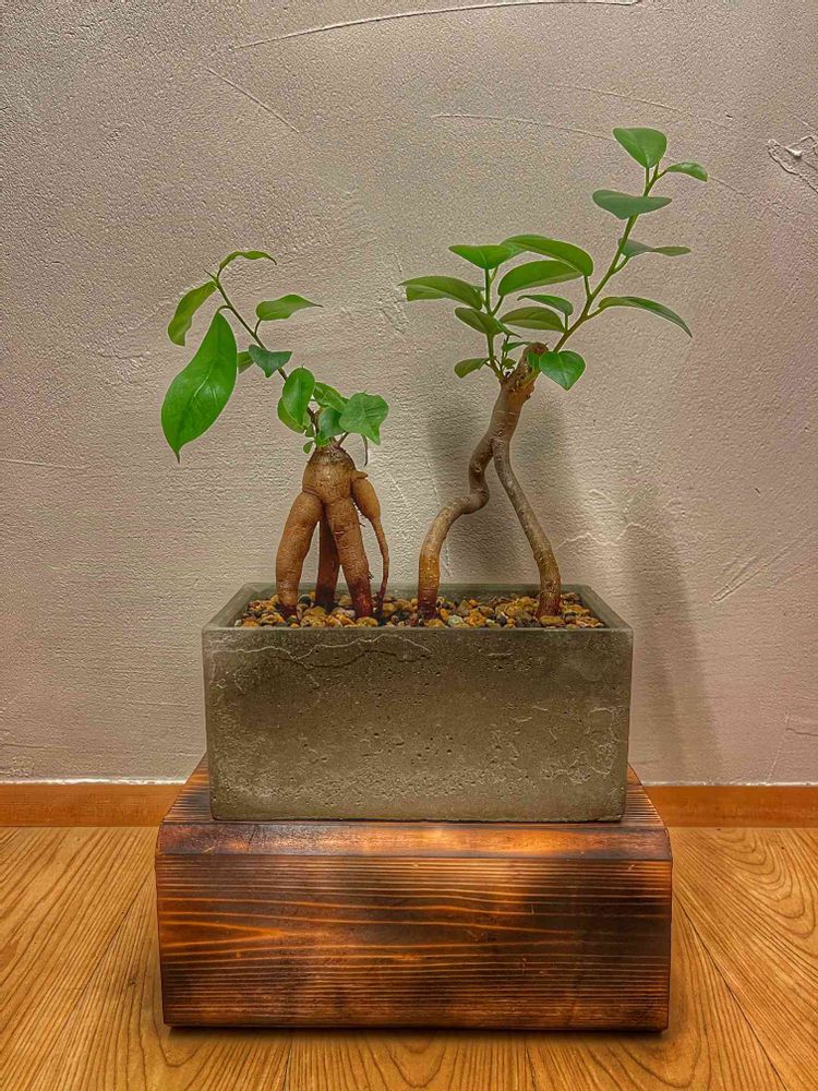 2週間ほど前、二本足の可愛いガジュマルを発見っ!って思わずポチッとしてから、お相手探しが始まり3.5本足の根上がり具合が宇宙人っぽい子を見つけて、そこから鉢探してと昨日やっと寄せ植え完成っー!