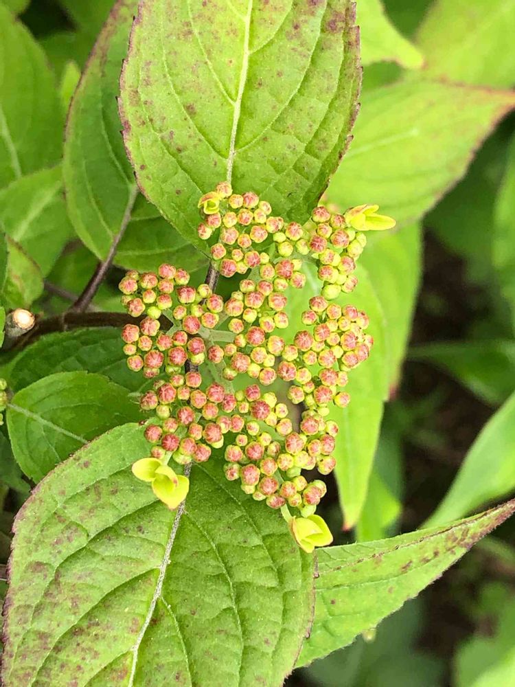 紫陽花の紅(くれない)の額が目立ち始めた。
