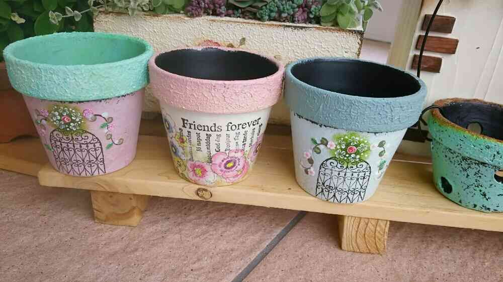 パステルカラーの可愛いリメ鉢♡とっても素敵ですね〜🎶
