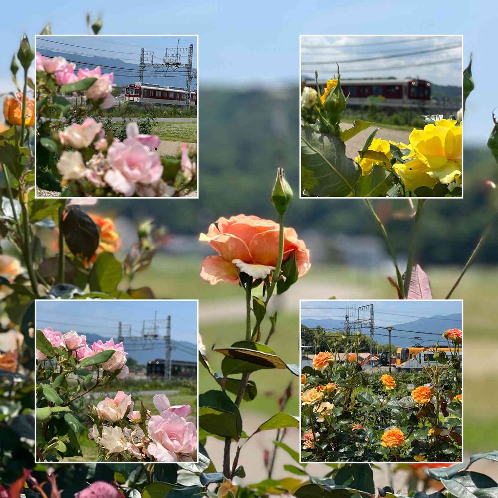 バラ園に響いてくる踏切音、スマホ構えるとこ探して、構えて、シャッター 😊