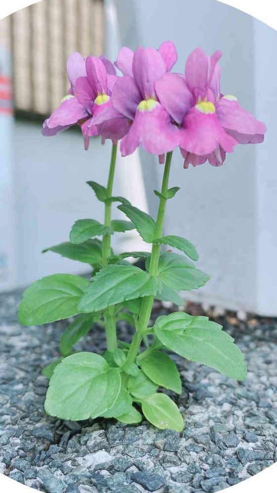 門柱の上で初め、葉っぱしか見えてなくて、あらぁ、ビオラの種こんな所に〜と思ってたら咲いて、、、ネメシアさんだと気付いた😂